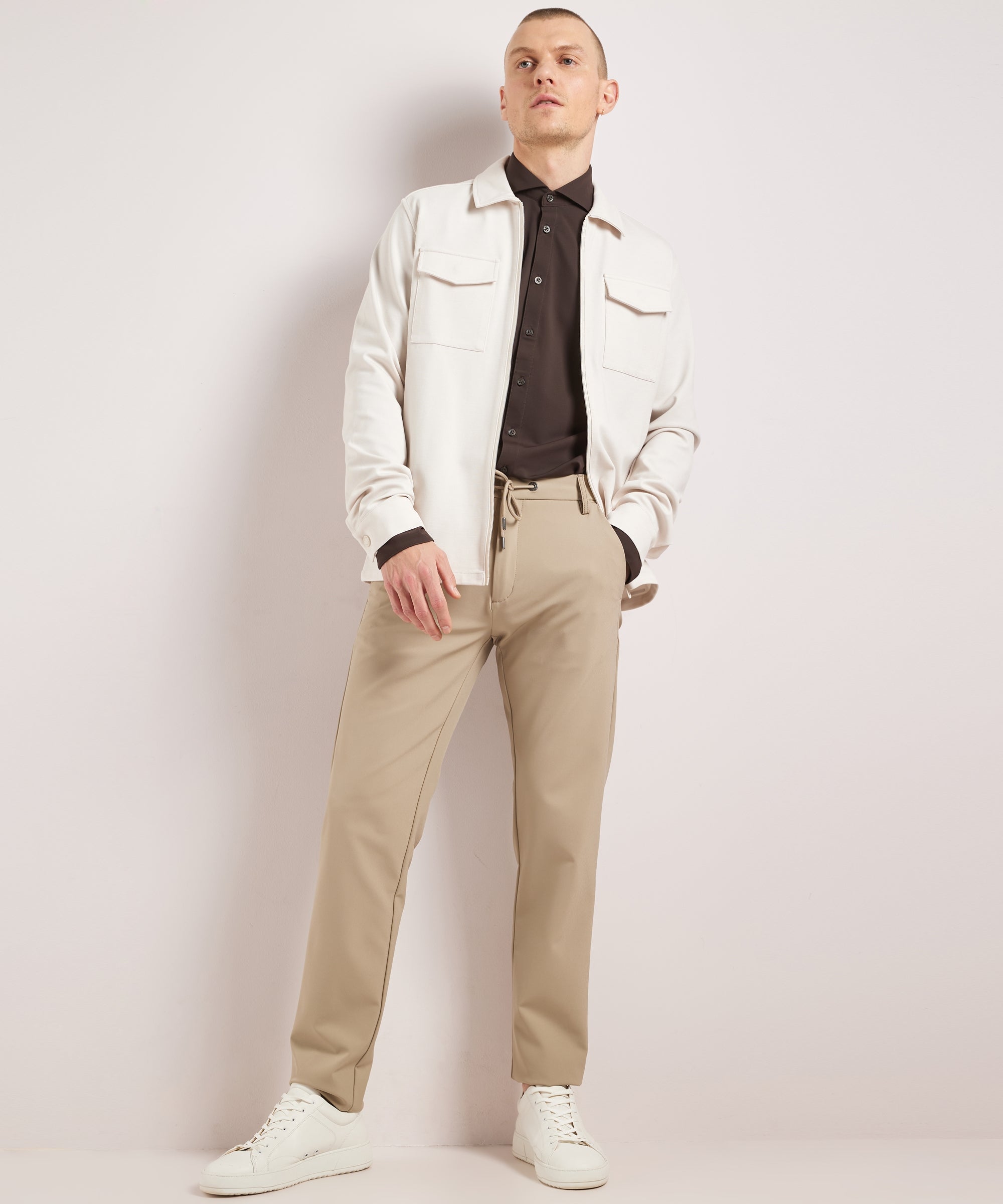 Dit overshirt combineert een strakke uitstraling met comfortabel draaggemak. De soepele stoffenmix voelt zacht en flexibel aan en geeft je de hele dag bewegingsvrijheid. De regular fit valt ontspannen en maakt dit item ideaal om te dragen als licht jasje of als extra laag. Perfect voor casual en smart casual momenten, zowel op het werk als in het weekend.